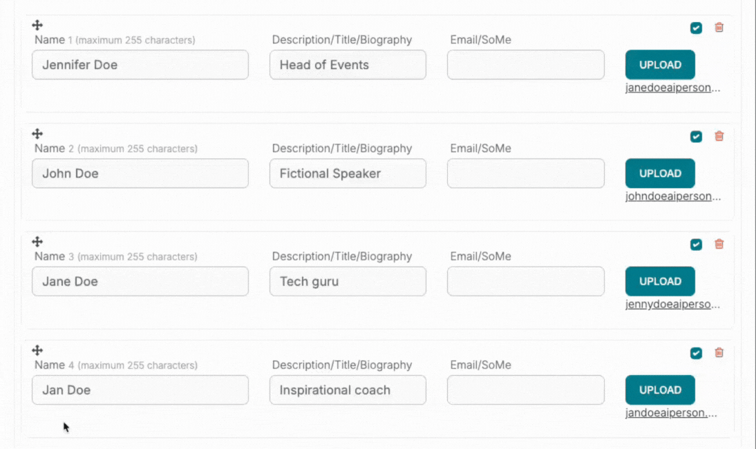 Each speaker or guest now has a drag handle, allowing you to simply click, drag, and drop them into the order that suits your program best. Quick, smooth, and hassle-free.